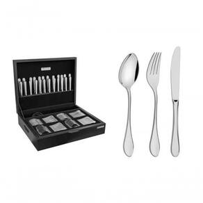 Com o Faqueiro Tramontina Italy em aço inox com facas de mesa forjadas 6 mm, acabamento alto brilho e estojo de madeira 101 peças, sua mesa ganha elegância e requinte em todas as ocasiões. O design exclusivo e o brilho intenso das peças valorizam cada detalhe da composição, oferecendo um completo para mesa e sobremesa. As colheres têm bojo simétrico e bordas delicadamente arredondadas, enquanto os garfos contam com dentes polidos na parte interna e formato ergonômico. As facas forjadas possuem lâminas temperadas, que garantem alta durabilidade do fio e resistência à corrosão, sem riscar porcelanas. Fabricado em aço inox de alta qualidade, o faqueiro proporciona longa vida útil e um visual impecável. Para completar, o estojo de madeira MDF com compartimento retrátil oferece um armazenamento prático e ainda pode ser como parte da decoração.