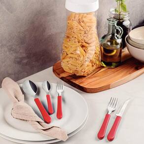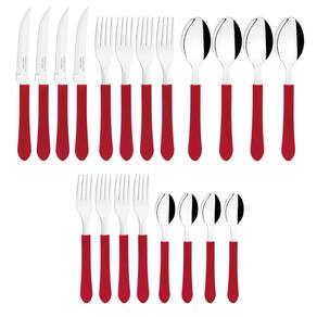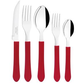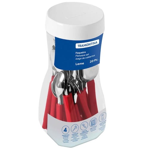 Faqueiro Tramontina Leme com Lâminas em Aço Inox e Cabos de Polipropileno Vermelho 20 Peças.
