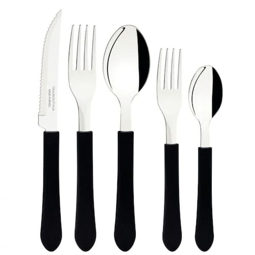 As pecas que compoem o jogo sao produzidas com laminas em aco inox e cabos de polipropileno que contam com resistencia e durabilidade para estarem presentes em todos os momentos do seu dia.