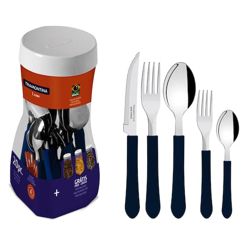 Faqueiro Tramontina Leme com Lâminas em Aço Inox e Cabos de Polipropileno Azul 20 Peças