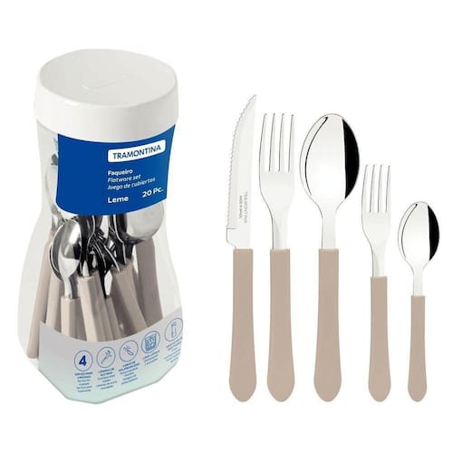 Faqueiro Tramontina Leme com Lâminas em Aço Inox e Cabos de Polipropileno Cinza 20 Peças Tramontina -