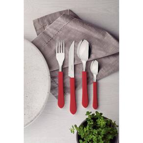 Se você gosta de deixar sua mesa colorida e atrativa, o Faqueiro Tramontina Leme com Lâminas em Aço Inox e Cabos de Polipropileno Vermelho 12 Peças é indispensável. Perfeitas para uso diário, suas peças são resistentes e duráveis, devido às lâminas produzidas em aço inox e aos cabos de polipropileno. As facas possuem aplicação de tratamento térmico para deixar o fio de corte excelente e os garfos e facas tem espessura e estampagem especial. Todos eles ainda são fáceis de limpar, podem ir à máquina de lavar louças e vão facilitar sua rotina na cozinha. Escolha Tramontina e deixe sua mesa muito mais bonita! Orientações Lâminas de aço inox. As lâminas das facas têm maior durabilidade do fio devido ao tratamento térmico. Os garfos e colheres garantem maior resistência devido a espessura do aço e a estampagem das lâminas. Os cabos de polipropileno possuem maior resistência e durabilidade. Podem ir à máquina de lavar louças facilitando seu dia a dia. Características Gerais EAN13 7891112200265 DUN14 17891112200262 NCM 8215.20.00 Peso Líquido 0,2200 kg. Peso Bruto 0,2400 kg. Metragem 0,001100 m³. Dimensões Embalagem (Compr. X Larg. X Alt.) 40x 100x 275 mm. Cor 1 A6192E Hexa Observações Antes da primeira utilização, lave bem as peças e seque-as.Tenha cuidado ao manusear produtos cortantes e perfurantes e mantenha-os fora do alcance das crianças.Para maior durabilidade dos produtos recomenda-se secar bem antes de guardar, mesmo após lavagem em máquina. Para descarte dos produtos e embalagens siga as orientações de reciclagem vigentes.