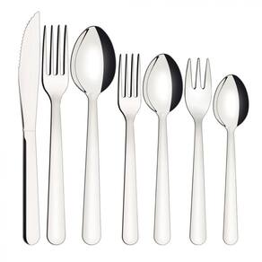Seu estilo classico combina com qualquer ocasiao, desde refeicoes simples ate jantares especiais. As facas possuem laminas com tratamento termico para maior durabilidade do fio, enquanto garfos e colheres tem estampagem reforcada, oferecendo conforto e seguranca no uso. Para facilitar ainda mais o seu dia a dia, todas as pecas podem ir a maquina de lavar loucas.