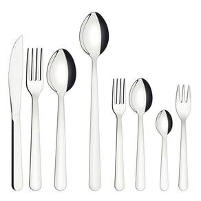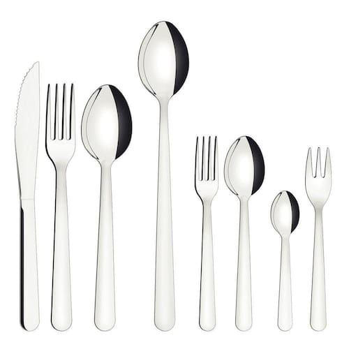 Talheres produzidos em aço inox que mantém a beleza, a higiene e a durabilidade. Lâminas das facas com maior durabilidade do fio devido ao tratamento térmico. Garfos e colheres que garantem maior resistência devido a espessura do aço e a estampagem das lâminas. Podem ir à máquina de lavar louças facilitando seu dia a dia.