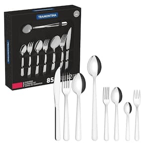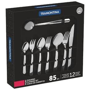 Uma mesa posta é essencial para tornar suas refeições mais especiais e proporcionar a elas muita qualidade e estilo. Para isso, conte com o faqueiro Tramontina em aço inox 85 peças. Totalmente produzidas em aço inox, suas peças mantém a beleza, a higiene e a durabilidade, tendo as lâminas das facas com tratamento térmico e os garfos e colheres espessura especial do aço e a estampagem das lâminas, características que garantem maior resistência e durabilidade. O faqueiro ainda pode ir à máquina de lavar louças e vai tornar seu dia a dia na cozinha muito mais fácil!