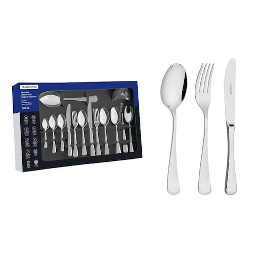 O Faqueiro Tramontina em Aço Inox com Facas de Mesa Acabamento Alto Brilho com Detalhes no Cabo 101 Peças da linha Mônaco possui muitas qualidades. Seus itens são altamente duráveis, mantendo sua beleza e higiene. As facas com lâminas temperadas garantem mais resistência, não corroem e nem riscam a porcelana. Os garfos polidos e as colheres simétricas e arredondadas oferecem mais conforto no uso.