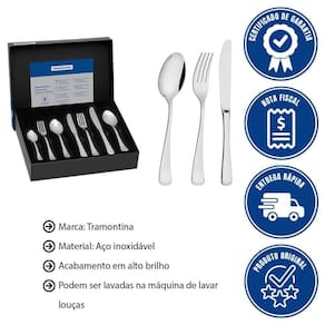 - Os talhares foram produzidos em aço inox, que lhe confere durabilidade, além de contar com um acabamento em alto brilho, perfeito para trazer beleza para a mesa.