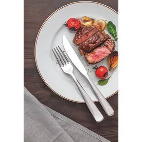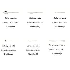 CONTEÚDO DO JOGO - 12 Colher de Mesa Pacific em Aço Inox - 12 Garfo de Mesa Pacific em Aço Inox - 12 Colher para Chá Pacific em Aço Inox - 12 Colher para Café Pacific em Aço Inox - 12 Garfo para Torta Pacific em Aço Inox - 12 Faca para Churrasco Pacific em Aço Inox