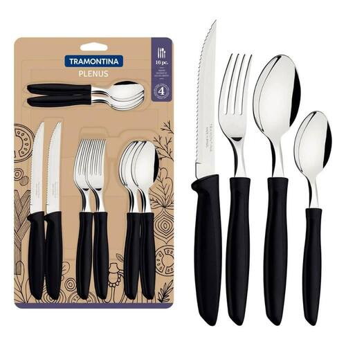 Faqueiro Tramontina Plenus em Aço Inox e Cabos de Polipropileno Preto 16 Peças.