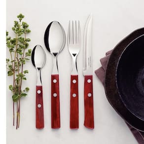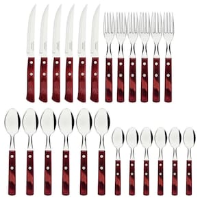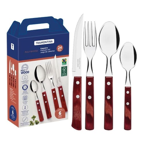 Ficará ainda mais fácil fazer bonito à mesa com o faqueiro Tramontina Polywood com lâminas em aço inox e cabos de madeira tratada vermelha 24 Peças. A linha Polywood traz os melhores talheres com cabo de madeira tratada para compor a mesa deixando os momentos especiais. As peças são produzidas com lâminas em aço inox, garantindo sua durabilidade e beleza. Os cabos são produzidos em madeira tratada Polywood, resistente ao tempo, à umidade e impactos. Um faqueiro com a qualidade Tramontina, que você já conhece e confia!