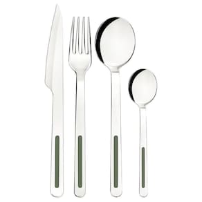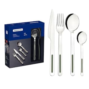Talheres produzidos em aço inox que mantém a beleza, a higiene e a durabilidade. Lâminas das facas com maior durabilidade do fio devido ao tratamento térmico. Garfos e colheres que garantem maior resistência devido a espessura do aço e a estampagem das lâminas. Cabos com detalhes em polipropileno.Podem ir à máquina de lavar louças facilitando seu dia a dia.