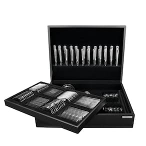 Faqueiro Zurique em Aço Inox com Facas de Mesa Acabamento Alto Brilho com Estojo de Madeira 101 Peças Tramontina