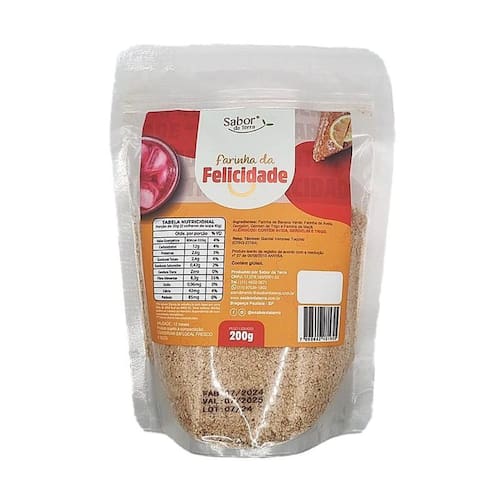 Farinha da Felicidade Mix de Farinhas e Grãos Pouch Sabor da Terra 200g A Farinha da Felicidade Mix de Farinhas e Grãos Pouch auxilia no aumento de energia, melhora a digestão e a sensação de bem estar. Pode ser utilizada em receitas de tortas, bolos e pães, em sucos e vitaminas ou iogurtes com frutas.