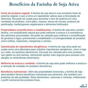 Composição: farinha de soja integral micronizada inativa. Não contém glúten. Contém soja e derivados.