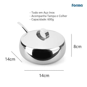 - Material: Aço Inox - Dimensões: 14 x 14 x 8 cm - Peso: 600 g