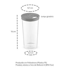 Garantia: 90 dias / Peso: 70g / Cor predominante: preto / Referência: 7895155357191 Dimensões: 8,7cm (C) x 8,7cm (L) x 16cm (A); Capacidade: 500ml; Materiais: poliestireno cristal e polipropileno.