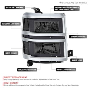 - ?Montagem?Este item é compatível com Silverado 1500 14-15/serve apenas para modelos com faróis refletores/não serve para modelos de farol de feixe de projetor
