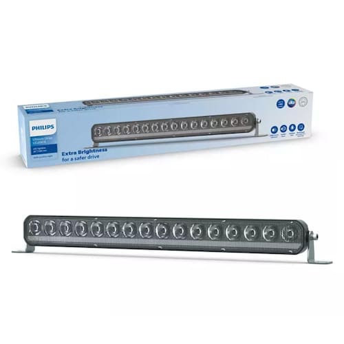 Veja distâncias maiores com uma luz branca brilhante que é projetada até 400 metros. A barra de luz LED Ultinon Drive 2003L é 100% aprovada para circulação, com um design de peça única robusto que integra tecnologia de arrefecimento avançada. É resistente à água, pó, ferrugem e impactos.