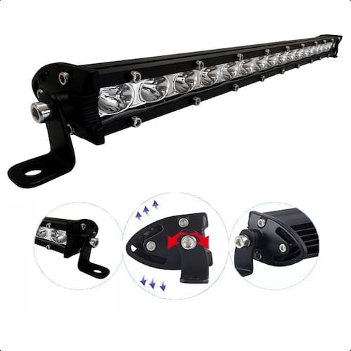 Farol de Milha automotivo ou Barra de LED Auxiliar, ideal para grade de caminhonete É possível regular o ângulo e intensidade do facho de luz. Fabricada em alumínio, é resistente à água com certificado IP68, tem vida útil superior à 30 mil horas.