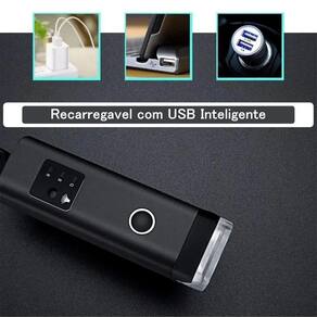 Carregamento via USB com duração de 3 a 4 horas.