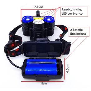 Ideal para suas aventuras, passeios ou no trabalho onde precisa de uma iluminação forte e com as mãos livres para executar com perfeição a tarefa. Possui, elásticos com regulagem para melhor segurança, argola antiqueda, evitando assim, que machuque o couro cabeludo.