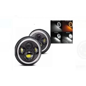 Farol de led redondo 7 alto e baixo 60w 17cm unitário 1 farol de led redondo universal 7 alta e baixo com seta laranja 60w