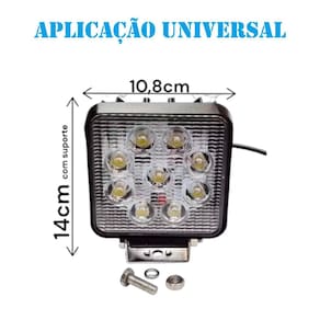 Farol de milha led 27w quadrado 9 leds off road universal Nl peças automotivas -- descrição do produto Farol de milha led 27w quadrado off road universal -- especificações tecnicas Potência: 27w; Vida útil estimada em 30.000+ horas; Temperatura de operação: -40c à 85c; Carcaça em alumínio, que garante a dissipação do calor do led; Lente tipo flood maior abertura ; Ip67 totalmente resistente contra poeira e altamente resistente contra água ; Alimentação: 10v - 30v; Suporte de fixação em inox; Instalação universal em qualquer máquina ou veículo; Suporte articulável, com 180 de ajuste. -- montadora Universal -- aplicação resumida Universal -- aplicação completa Universal -- conteúdo da embalagem Farol de led quadrado, com 09 leds, 27w: 01 Suporte de fixação. -- procedência de fabricação Mrmk m0004-f -- Obs: o produto não terá se for identificado erro na aplicação -- observações - antes de finalizar a compra tire suas dúvidas no campo perguntas Marca: Não Informado
