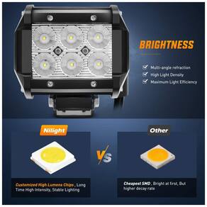 AMPLA GAMA DE ILUMINAÇÃO Copo refletor de inundação, feixe de inundação brilhante, visão de grande angular, permitindo que você veja claramente a esquerda e a direita SUPORTE DE MONTAGEM AJUSTÁVEL A barra de luz pode ser ajustada em cerca de 45 graus, o que facilita a mudança de direção do feixe de luz PROTEÇÃO EFICAZ Com taxa à prova dágua IP67, as luzes podem efetivamente resistir à água e poeira, evitando umidade e condensação FIOS DE QUALIDADE SUPERIOR Boa condutividade elétrica, alta temperatura e resistência ao derretimento, excelente desempenho de dobra O PACOTE INCLUI 2 PCS 18W Flood LED Light Bars, 1 PC Fiação e Suportes de Montagem