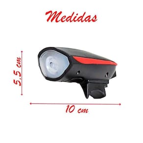 Possui uma bateria interna recarregável de alta capacidade e também é resistente a água. (não deve ser submersa). Acompanha presilhas de silicone para fixar tanto a lanterna quanto o botão de comando da buzina.
