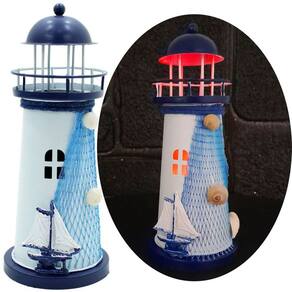 Farol Marítimo Artesanal Enfeite Náutico Metal Com LEDs 18cm
