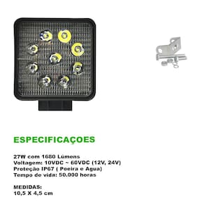 Farol Quadrado 27W com 1680 Lúmens