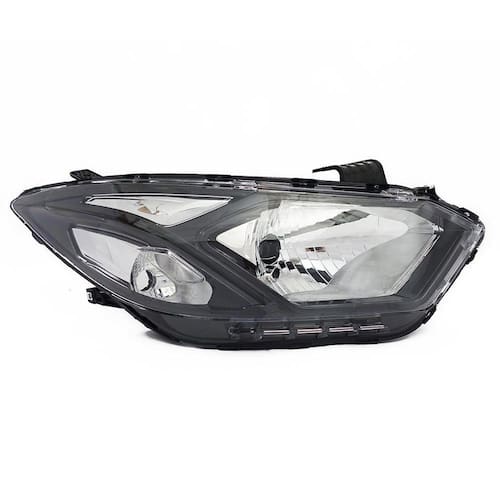 - Farol principal com mascara negra, molduras traseiras e refletores metalizados, e moldura frontal preta;