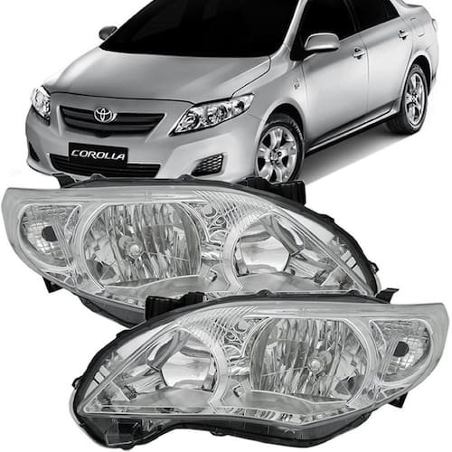 Características: de ótima qualidade. Lente lisa em acrílico. Especificações técnicas: foco duplo. Regulagem de foco manual. Encaixe de lâmpada na baixa hb4. Encaixe de lâmpada na alta hb3. Suporta xenon e lâmpadas até 55 watts. Compatível com os modelos: corolla 2008. Corolla 2009. Corolla 2010. Corolla 2011. Importante: garantia de 3 meses. Não acompanha lâmpadas. Não nos responsabilizamos por instalação mal realizada. A instalação deve ser feita por um profissional especializado.