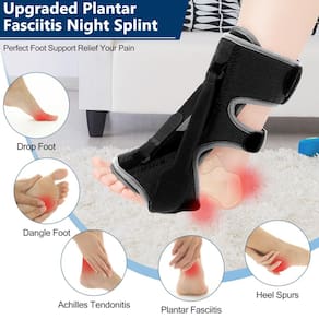 - Tala noturna para fascite plantar - tala noturna para fascite plantar permite que seus pés sintam os efeitos calmantes de uma tala noturna para fascite plantar ao mesmo tempo. Meça a circunferência do tornozelo para caber de 20,3 a 38,1 cm, o que pode envolver melhor seu tornozelo e consertá-lo. Sempre consulte um médico se houver dor, inchaço ou reações incomuns.