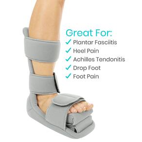 - Design versátil: a tala noturna macia Vive é uma bota versátil que serve para homens e mulheres. Presa com três alças largas ajustáveis, a tala noturna sem látex pode ser usada no pé esquerdo ou direito. Pode ser usada como uma bota de caminhada para ajudar com lesões como torção no tornozelo, tendões lesionados, esporão do calcanhar e ossos quebrados.