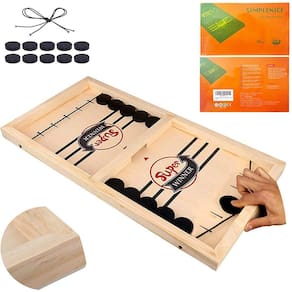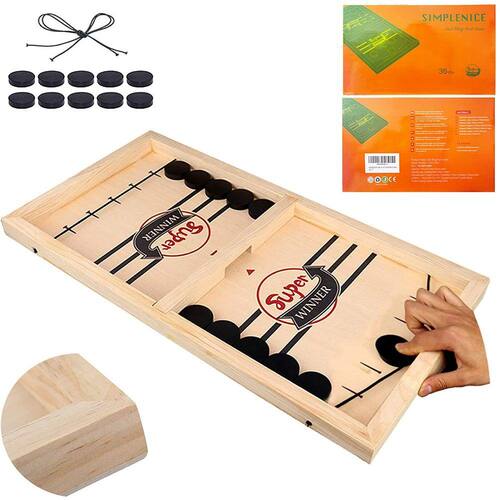 . Jogo engraçado e emocionante: Comece o jogo e coloque cinco discos em cada lado do tabuleiro. Deslize ambas as extremidades da banda elástica para as ranhuras laterais para que elas se encaixem no lugar. Quem limpar o tabuleiro primeiro, ganha. Madeira maciça de alta qualidade: estrutura de madeira maciça e peças de jogo de madeira. Mais durável e ecologicamente correto do que outros materiais baratos, jogo bonito e duradouro. Melhore a capacidade de resposta:Este é um jogo de ação rápido, melhora a coordenação mão-olho do seu filho, fortalece a habilidade motora fina que amplia o foco das crianças, atrai crianças e fica longe da eletrônica. Diversão em Família:Leve e compacto o suficiente para carregar. Você pode estar pronto para jogar na mesa ou no chão, com seus amigos e família, é um jogo de família engraçado. Melhor Presente :Este é um jogo de hóquei no gelo de alta qualidade, um jogo rápido e inteligente, um belo presente para a família e amigos, e um jogo divertido e interativo