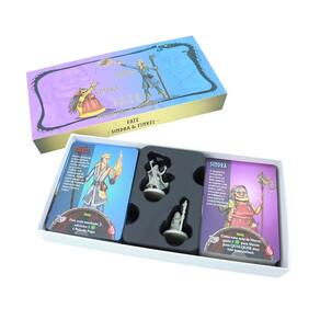 Uma caixa de expansão do jogo Fate: Defensores de Grimheim com dois personagens: Sindra e Finkel.
