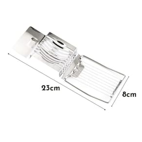Modelo: Fatiador de Ovos Inox Material: Aço Inoxidável Dimensões Aproximadas: 23cm (Comprimento) x 8cm (Largura)