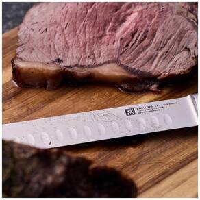 Descubra a excelência da série de facas Four Star da renomada marca HENCKELS. Este fatiador de carne assado é o companheiro perfeito para suas tarefas na cozinha. Forjado em aço inoxidável de alto carbono com lâmina FRIODUR, essa faca oferece resistência, durabilidade e precisão inigualáveis. A lâmina possui sulcos Granton, que evitam que alimentos finamente fatiados grudem. Além de cortar carnes, essa faca especial também é ótima para cortar bolos e bases de biscoitos. Com pegada ergonômica em polipropileno e lâmina afiada a laser, esta faca é a escolha dos chefs profissionais. Adquira já a sua e eleve o nível da sua experiência culinária!
