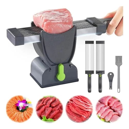 Conjunto de fatiador de carne atualizado: Experimente a preparação de refeições sem complicações com nossa máquina de fatiar carne doméstica! Equipado com 17 lâminas, este inovador cortador de carne permite cortar sem esforço carne crua fresca em 18 pedaços perfeitamente uniformes com uma única ação.-Design de aço inoxidável: invista em durabilidade com nosso cortador de carne de aço inoxidável de alta qualidade! Projetada com uma borda afiada de 8, a lâmina garante sempre um desempenho de corte de nível profissional. A ventosa inferior resistente mantém o aparador no lugar com segurança em superfícies lisas, eliminando movimentos indesejados durante o uso, para que você possa cortar com confiança.-Ajustável na espessura da sua fatia: Desfrute da máxima flexibilidade com nossa faca de açougueiro ajustável! Com dois conjuntos de lâminas, você pode escolher facilmente entre 2 mm ou 4 mm de espessura para suas fatias de carne. Transforme suas criações de cozinha fazendo tiras ou cubos de carne sem esforço-Limpeza fácil e armazenamento conveniente: simplifique a limpeza da sua cozinha com nosso cortador de carne adequado para máquina de lavar louça! Para quem prefere lavar as mãos, incluímos uma escova de limpeza para facilitar a manutenção. Além disso, seu design compacto e recurso de montagem na parede permitem fácil armazenamento, mantendo sua cozinha organizada e arrumada.-Amplamente utilizado: Este fatiador é amplamente utilizado. É cortado em rodelas finas, carnes, legumes e frutas. É utilizado no preparo de ingredientes de panela quente e na confecção de espetos de churrasco e na culinária diária. Utilize este cortador para cortar eficazmente várias carnes, para que possa facilmente satisfazer a boa manutenção da carne.Recurso:-Casa multifuncional: você pode facilmente cortar, ralar, picar, picar e outros métodos de corte de carne, atendendo às necessidades de diferentes pratos.-Corte fino de carne: O cortador de carne é especialmente projetado para cortes finos, a carne cortada é uniforme e fina, com melhor sabor.-Operação manual: sem necessidade de energia, simples e fácil de usar, economiza energia, é mais seguro e confiável.-Economia de tempo eficiente: conclua rapidamente as tarefas de corte de carne, economizando tempo e esforço, permitindo que você desfrute de cozinhar com mais facilidade.-Preservar o sabor autêntico da carne fresca: Velocidade rápida de corte de carne, não é fácil de produzir desgaste por fricção, mantém o frescor e a maciez da carne, deliciosa e nutritiva.Orçamento:Nome: cortador de carnePeso: 700gMaterial: aço inoxidável 304Tamanho:Fatiador de carne: 33,5*5,6cm;Assento da ferramenta: 13*8.7*8.5cmMétodo de limpeza: lavagem à mão/máquina de lavar louçaIngredientes aplicáveis: carne bovina/cordeiro/porco/salmão e outras carnes cruas macias desossadasIncluído no Pacote:1 conjunto de fatiador de carne