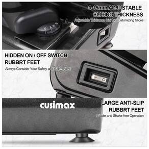 Easy Clean Safe O cortador de carne CUSIMAX nunca se preocupe em como limpar os alimentos escondidos nele. O design da pista oculta e a lâmina removível facilitam a limpeza da máquina de fatiar alimentos. Pés resistentes e antiderrapantes, proteção de segurança da lâmina e empurrador de alimentos garantem que o fatiador de alimentos permaneça no lugar para que você possa manter um aperto firme durante a operação. Design Avançado Adotamos a mais avançada estrutura de rolamento e acionamento por correia para processamento de lâminas. A operação do fatiador não requer lubrificante. Comparado com acionamentos por engrenagem, é mais durável e mais fácil de manter e operar. Ajuda a gerenciar seu trabalho na cozinha para ser mais fácil e eficiente. Acabamento atualizado Entendemos que a lâmina do fatiador é um dos componentes principais, por isso atualizamos a lâmina de corte 420 de aço inoxidável de por artesanato requintado, que pode ajudá lo a cortar alimentos de maneira ordenada e uniforme sem ficar preso. Espessura diferente Espessura ajustável precisa de super fina a aproximadamente 7 de espessura para cortar vários alimentos. O potente motor AC de 200 watts e a lâmina de aço inoxidável facilitam o corte de carne seca, presunto, sanduíches frios, tábuas de charcutaria, frios, queijos duros, frutas, vegetais e pão, frutas fatiadas para desidratação, pratos de festa, aperitivos e muito mais Marca: Não Informado