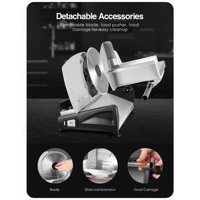 Para ser um chef O cortador de comida corta a comida com precisão, faz você parecer um BOM chef em casa. Espessura ajustável de super fino a aproximadamente 10 de espessura para cortar vários alimentos, como carne, frios, queijo, rosbife, peito de peru, legumes e frutas. Fácil de limpar recursos sem costura e removíveis facilitam a higienização. Nossa tampa de proteção de anel removível evita o acúmulo de detritos nas superfícies de corte. A lâmina, o carrinho de alimentos, a extensão da haste deslizante e o empurrador de alimentos são removíveis, permitindo uma limpeza e higienização completas. Proteção de segurança para operar o fatiador de delicatessen, você deve pressionar a trava de segurança e o botão liga , desliga simultaneamente para iniciar, evitar a operação de erro. Os pés de ventosa antiderrapantes mantêm o fatiador de carne estável durante o trabalho. Lâmina de aço inoxidável universal a máquina de fatiador de carne ostba possui a lâmina serrilhada de aço inoxidável de , acionada por 150 watts de poder de corte rápido e de alto rendimento, ajudará você a manter um corte afiado consistente Marca: Não Informado