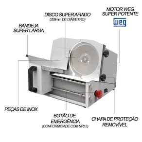 Esse Cortador de Frios Elétrico conta com estrutura 100% de metal, possui motor de alta tecnologia e sistema RED-PLUS, capaz de aumentar a vida útil do motor e diminuir a sua manutenção.
