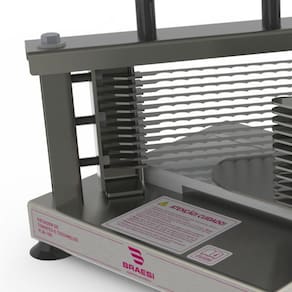 Ideal para restaurantes, lanchonetes e bares que contam com uma alta demanda na cozinha, o Fatiador de Legumes manual é perfeito para tomates, fatiando com espessura de 6,5mm. Esse fatiador conta com estrutura em aço inox escovado e 12 lâminas em aço inox 304.