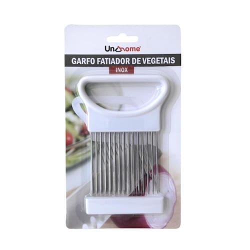 o fatiador de legumes é um utensílio que não pode faltar na sua cozinha. Ele facilita os trabalhos, trazendo rapidez e segurança no corte dos legumes e frutas. Com ele você corta diversas fatias de uma só vez. A maneira de usá-lo é muito simples, bastando fixar ele no alimento e cortar com uma faca por entre os dentes guia do fatiador. Ele é ótimo para cortar frutas, legumes e outros alimentos em fatias finas, que ficam na medida para decorar suas saladas e preparar seus pratos prediletos, dando um toque profissional aos pratos quando prontos. O material é de qualidade e os dentes em aço inox, que é higiênico e fáci de limpar. Descritivo do produto