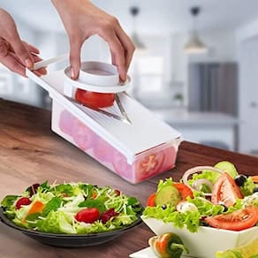 Fatiador De Tomate e Legumes Keita é mais praticidade para sua cozinha. Corta em dois tamanhos. Vem com regulador de espessura para você fatiar de acordo com sua necessidade. Possui recipiente coletor e protetor para evitar o corte.