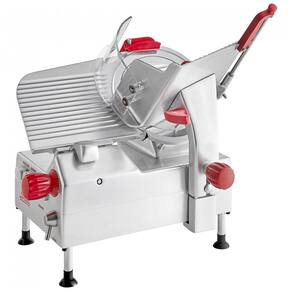 A faca de aço carbono de 30,48 cm do Fatiador Berkel B12ASLC cria fatias uniformes. Com motor de 0,51 CV e mesa de produto de 45, lida facilmente com grandes cortes. Possui afiador de faca de duas pedras na parte superior para manter a lâmina sempre afiada. Com anel de proteção da faca e travas de segurança, é seguro de usar. Desmonta sem necessidade de ferramentas para limpeza fácil. Ideal para operações de médio volume, este fatiador compacto e econômico se encaixa perfeitamente em cozinhas com espaço limitado. Com capacidade de fatiar precisamente , é perfeito para cortes ultrafinos ou mais grossos. Construído com aço inoxidável durável e acabamento em alumínio anodizado para limpeza rápida e durabilidade. Trabalha com ligação elétrica de 110V.