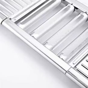 Fatiador Multifuncional Inox 9 Peças Cortador Nicer Dicer Speed - Velocidade e Versatilidade Absolutas Descrição do Produto: O Nicer Dicer Speed é sinônimo de velocidade, versatilidade e extrema nitidez. Este cortador multifuncional de legumes ajustável e intercambiável permite fazer tiras finas, julienne, ralar, picar, cortar em ondas e muito mais. Corte até 6 fatias com apenas 1 movimento Fabricado inteiramente em aço inoxidável de alta qualidade e livre de ferrugem, o Nicer Dicer Speed impressiona com pastilhas de aço inoxidável de qualidade G-NOX, conhecidas por sua robustez, extrema afiação e lâminas duráveis. Ele corta alimentos duros e macios com precisão, segurança e perfeição, tornando-se mais rápido e fácil do que qualquer faca convencional. Com o cortador de legumes Nicer Dicer Speed, você pode cortar seus ingredientes à mão livre ou diretamente na tigela, panela ou recipiente. O recipiente de coleta pode ser encaixado diretamente no dispositivo portátil, proporcionando um trabalho limpo e prático. Ideal para quem busca uma experiência culinária em casa, o Nicer Dicer Speed oferece flexibilidade e velocidade em um formato compacto e versátil. Destaques: Versatilidade e flexibilidade com insertos de lâmina intercambiáveis Lâminas extra afiadas com qualidade G-NOX Dispositivo portátil com uma ampla gama de funções Corte 6 fatias com apenas 1 movimento Cortes perfeitos sempre, seja em alimentos duros ou macios Corte direto na panela, pote, tigela ou recipiente de sua escolha Funções: O Nicer Dicer Speed pode ser como fatiador de legumes, ralador de parmesão, ralador de nozes, fatiador de cebola e muito mais, tudo em um único dispositivo Este cortador de vegetais é ajustável e corta grandes quantidades rapidamente, sem esmagar. Perfeito para abobrinhas, batatas, cenouras, repolho roxo, ervas, pimentões, saladas, outros vegetais e frutas de forma rápida e eficiente na cozinha. Itens Inclusos: 1 x Moldura 1 x Multi-fatiador com 3 lâminas 1 x Inserto fatiador com Julienne 1 x Inserto ralador fino 1 x Suporte de material de corte 1 x Alavanca para remover o material cortado Medidas A 8cm C 7cm L 14 / com Fatiador 34cm