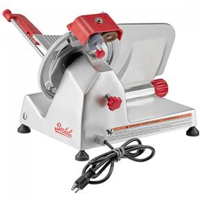 A Fatiadora de Carne Manual Berkel B9SLC é perfeita para operações de baixo volume, ideal para pequenos estabelecimentos. Seu motor de 1/4 hp e mesa de 76 cm lidam facilmente com cortes grandes. Com lâmina de aço carbono de 23 cm, consegue fatiar com precisão até 2,4 cm de espessura. Possui afiador de faca de duas pedras, desmontagem fácil para limpeza sem ferramentas e anel de proteção. Construída em aço inoxidável durável, oferece limpeza rápida e durabilidade. Segura e eficiente, é a escolha ideal para seu negócio!