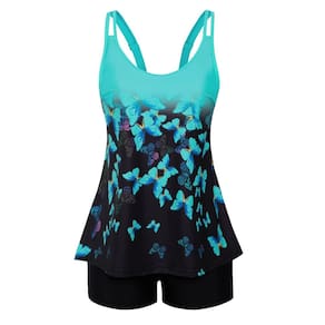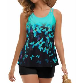 Arolina Tanquíni feminino com controle de barriga, roupa de banho de duas peças, blusa rodada com shorts para meninos, Borboleta azul - Tecido: o tanquíni de 2 peças é feito de tecido macio e de alta qualidade. É elástico, respirável, leve e durável, garantindo conforto quando utilizado. O recurso de secagem rápida garante conforto adicional para o seu corpo. - Design: o maiô tanquíni feminino possui sutiã acolchoado removível e alças duplas ajustáveis. Os tops de tanquíni soltos e soltos para mulheres são longos o suficiente para esconder sua barriga, proporcionando uma sensação segura ao sentar ou nadar. - Detalhes: Os trajes de banho modestos com shorts oferecem cobertura mais do que adequada, o design de cintura alta pode cobrir sua barriga e fazer você parecer mais magra. - Ocasião: perfeito para natação, festas na praia, férias tropicais, esportes, piscina, festa aquática ou qualquer outra ocasião. - Tamanho: este maiô está disponível em tamanhos regulares e grandes. Verifique a tabela de tamanhos cuidadosamente antes de comprar para escolher o tamanho que combina com o seu corpo.
